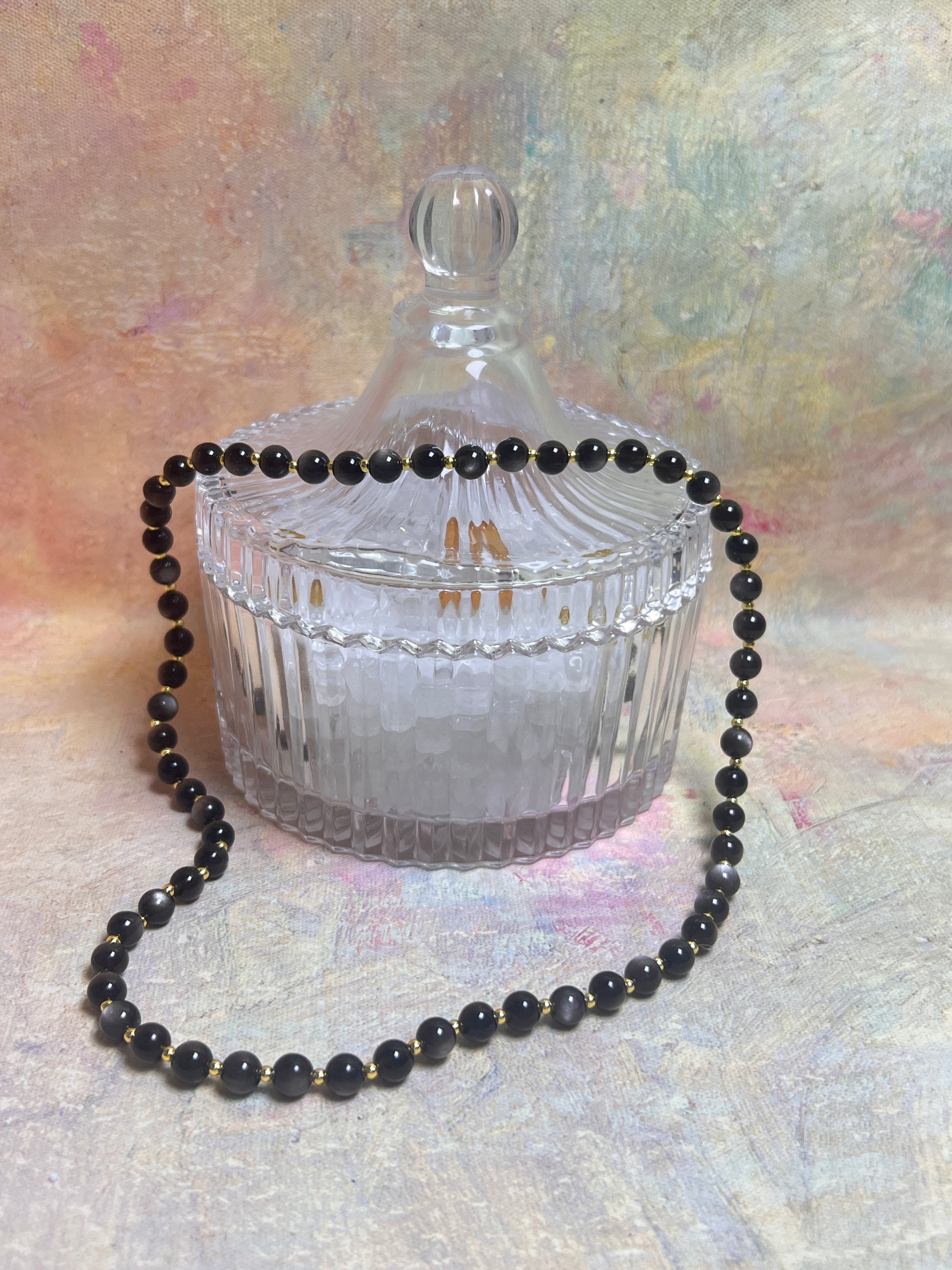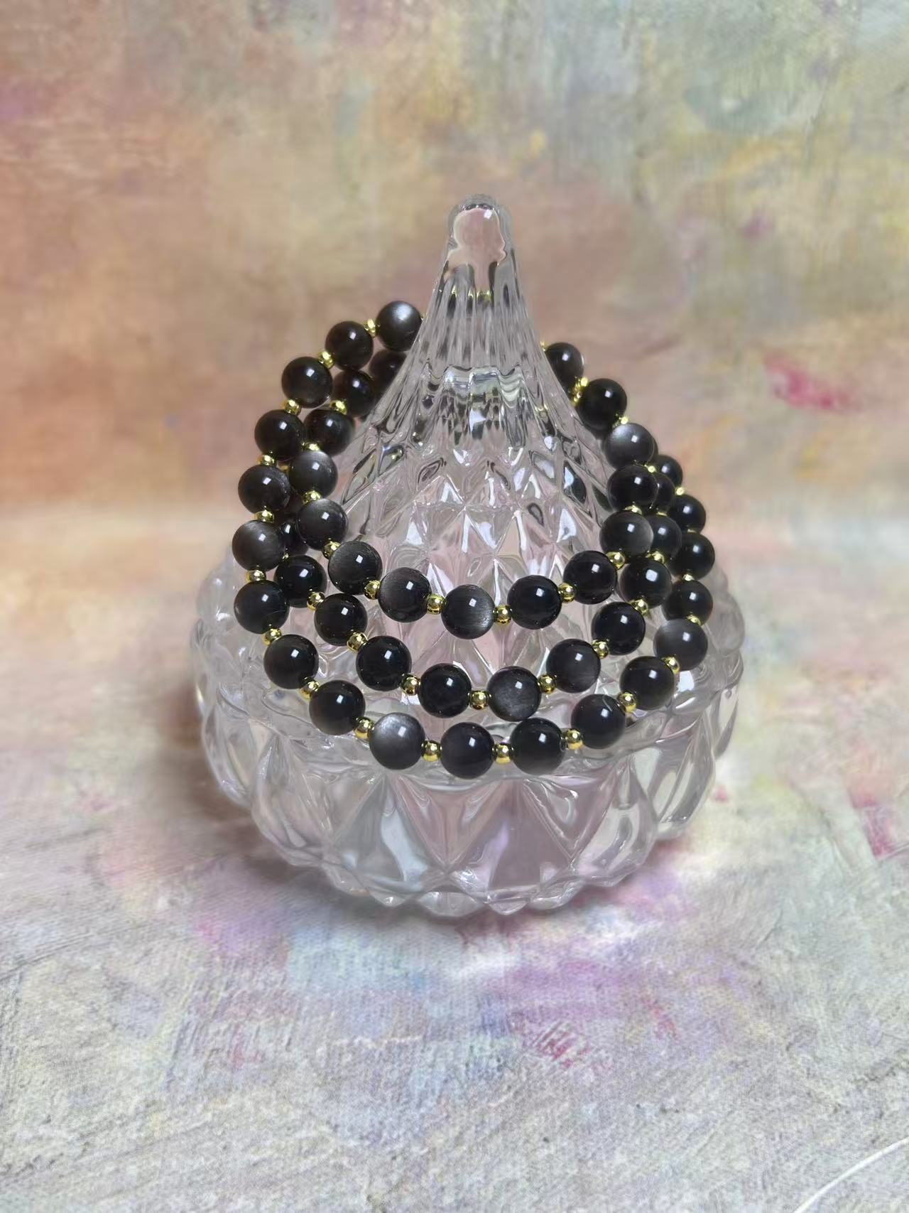 As night gradually falls, silver light gently pierces the darkness, quietly spilling over, like moonlight caressing the earth. This Silver Shine Crystal Bracelet embodies the same serene elegance. The stones shimmer softly as they catch the light, reflecting a gentle silvery glow, like stardust drifting silently across the night sky, bringing a sense of tranquility and depth. Each crystal is translucent and delicate, with subtle internal glimmers, as if holding fragments of moonlight within.